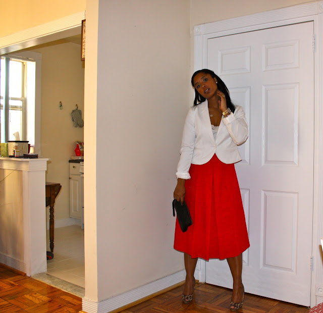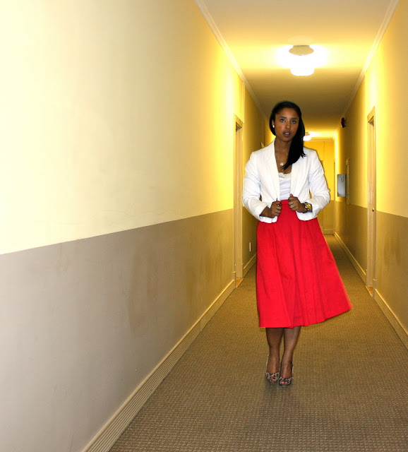 Cutee! I love the length of the skirt! Calkf skirts are a huge trend for Spring and the Red-LOVE