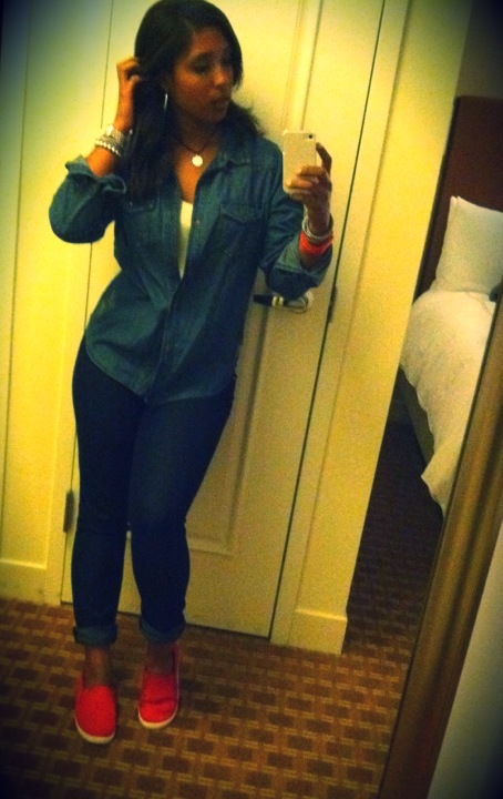 Denim Shirt: Max Azria and Miley Cyrus Jeans: Forever 21 Heels: gifted from my boyfriend and last seen in this Post HERE