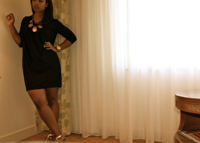 I really like the black and gold outfit. An easy look but very stylish. The necklace is too cute.