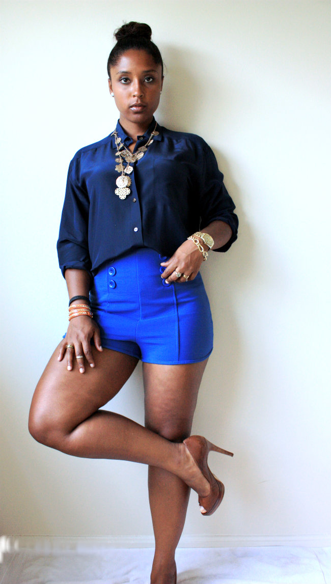Liz Claiborne shirt I found while thrifting in Virginia and paired it with my high waisted sailor inspired short shorts!