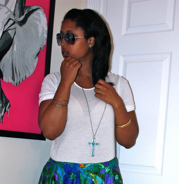 Don’t even laugh because I fricken adore these palazzo pants that I found at a thrift store in Virginia. I have been dying to wear them and even though they may look a little “mardi gras” ish… I will rock em till they die. I believe they were handmade and probably for a luau or a clown party but hey… I’ll be that.. a CLOWN but I will be a cute clown… bet that ๐ This heat is killing me so I couldnt take pics outside.. its 96 right now with a humidity of “jen’s gonna have clown hair to go with those pants” Homie don’t play that! ๐