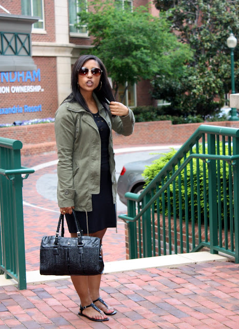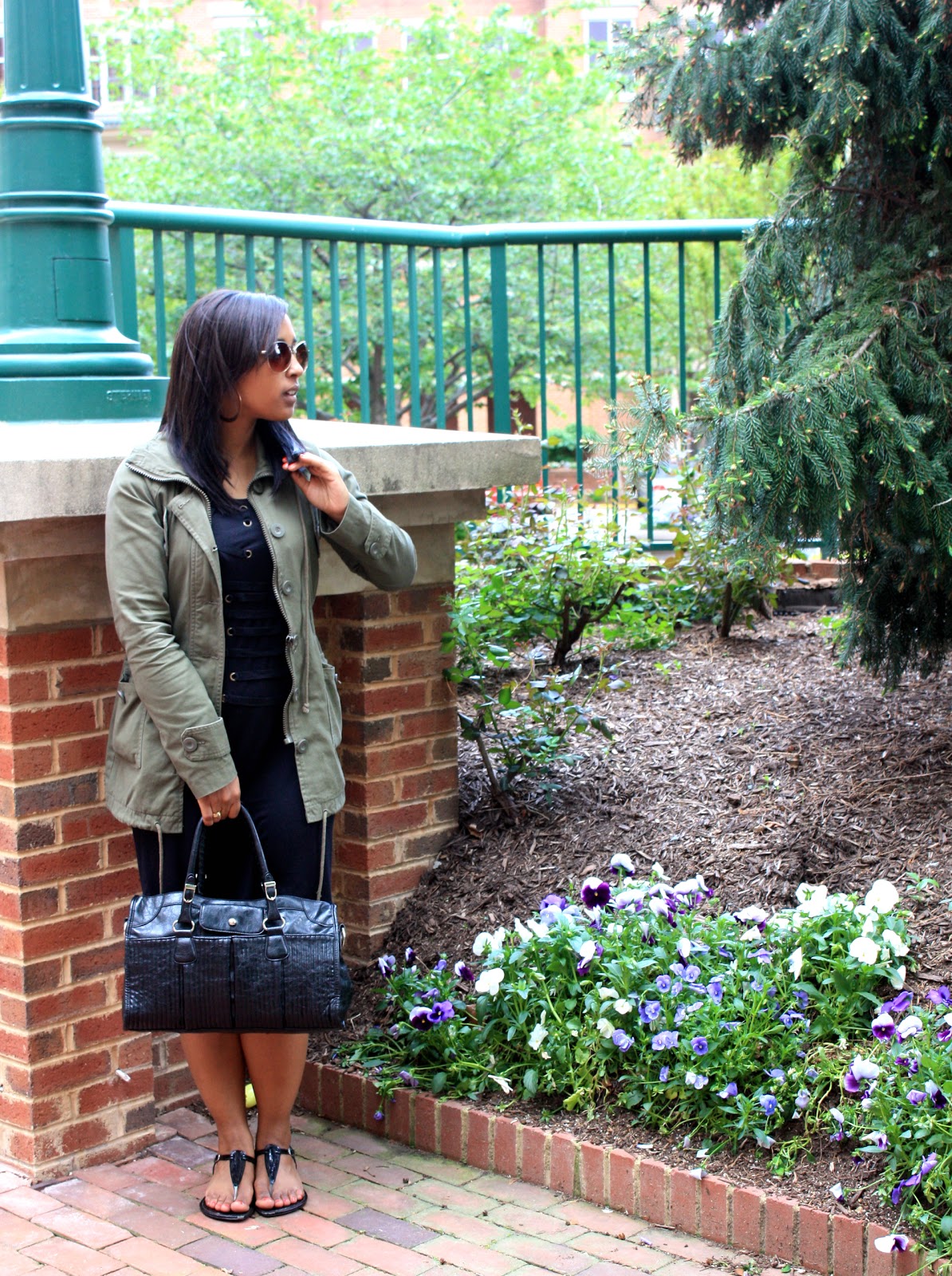 I decided to wear my lace up front black t shirt dress from ASOS with flats and a military green jacket. I dont care what happens in trends, I LOVE MILITARY! lol (that’s my type of patriotism)