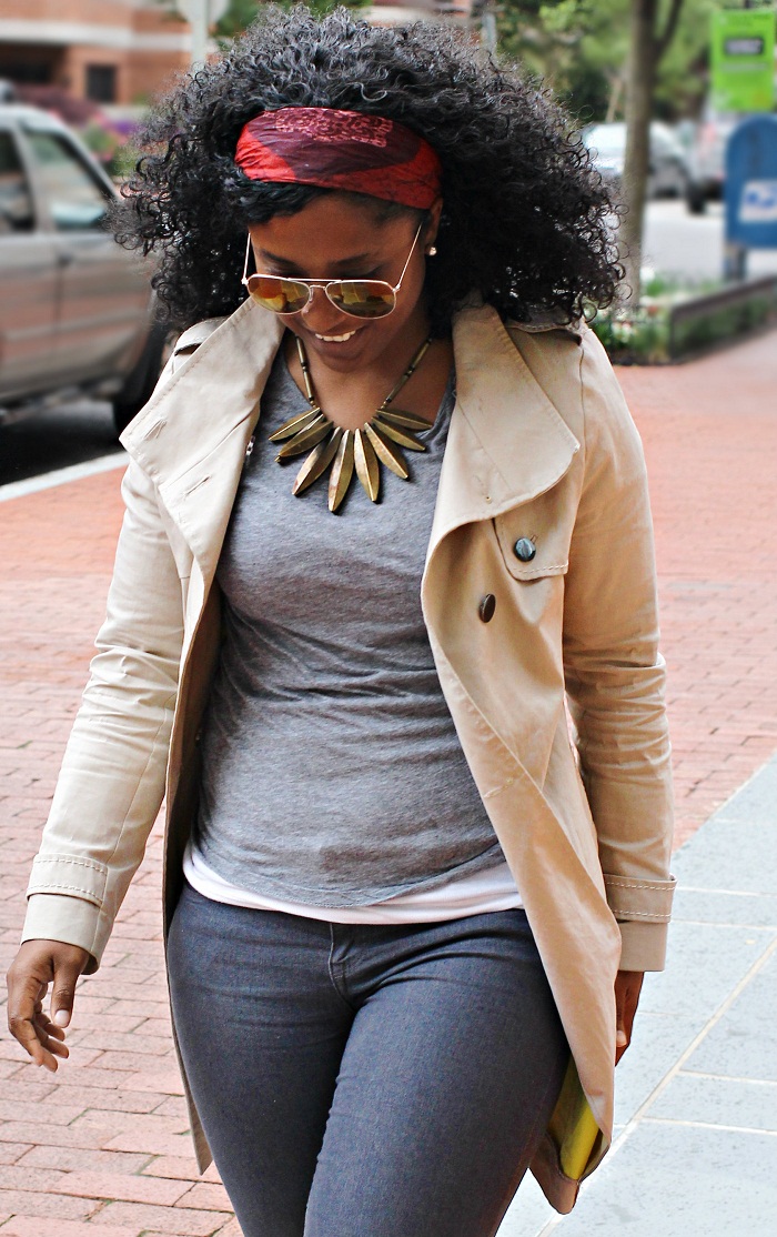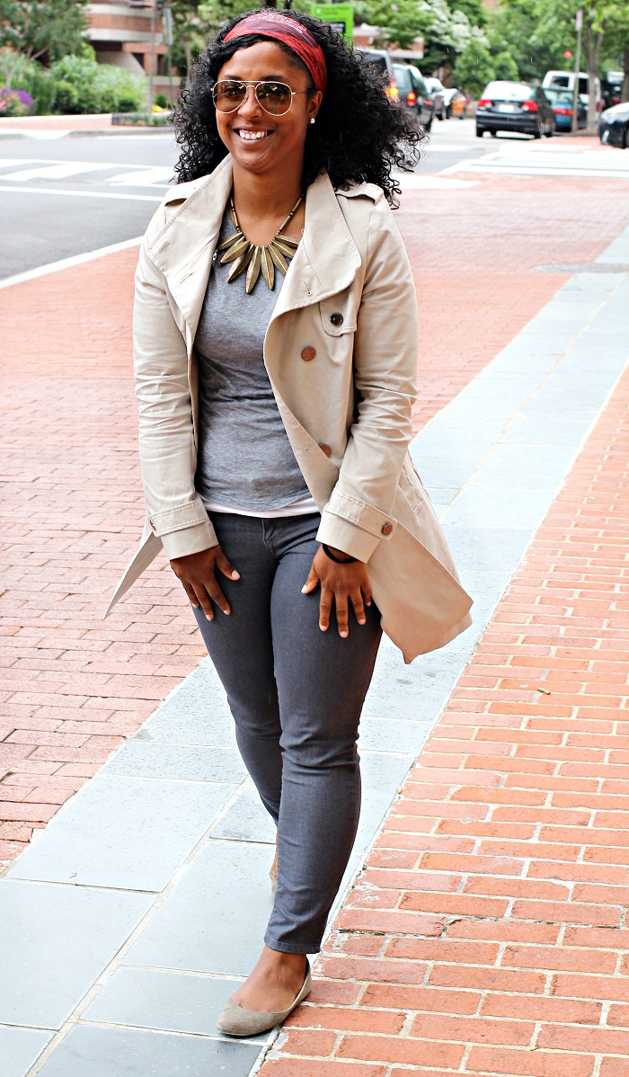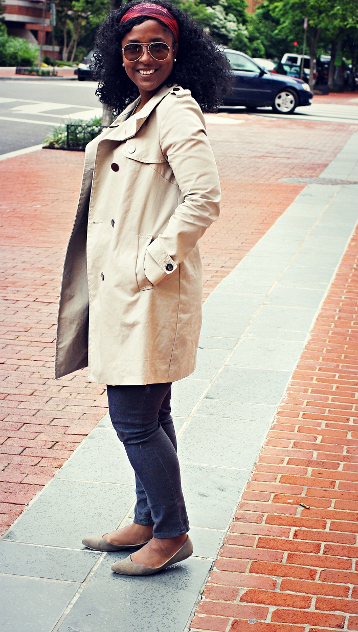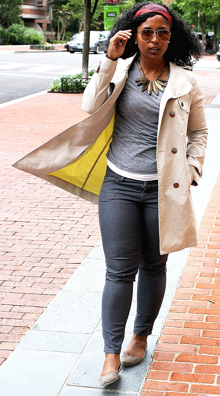 Trench coats are my “leather jacket” of the spring time. If you follow this blog, you know I love leather in the fall and winter. I am almost always wearing something leather and although there are light weight versions for the warmer times, I tend to gravitate towards trench coats more so. I am currently, desperately looking for a sleeveless trench coat that I can wear as a vest or layer. If anyone sees any, please let me know ASAP! Last year there was an AMAZING one from Forever 21 but alas I was being too cheap frugal and did not purchase it. I really am kicking myself in the head for it! This is my nice minimalistic monochromish outfit for a windy and ugly DC day.