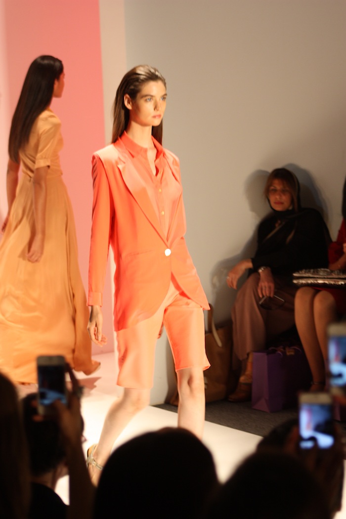 I am currently in New York City enjoying all the style and fashion escapades that is Mercedes Benz New York Fashion Week!!! It is still so surreal to me that little old me is here and even more so INVITED to shows and have a planner filled with presentations and runway shows the next few days. I was the most excited to get an invite to the Tadashi Shoji show but unfortunately due to my 9-5, could not attend it yesterday but was stoked that Nadia of Nadia Aboulhosn was able to use my invite and cover it for me. I owe her a ton for that and cannot wait to see the pics that she took! Today was all about Noon by Noor and their fabulous use of colors such as corals and oranges. Every ensemble was fluid, draped well and most of the dresses or skirts offered a high slit that was pure PERFECTION! I am definitely a new and very happy fan of the duo!