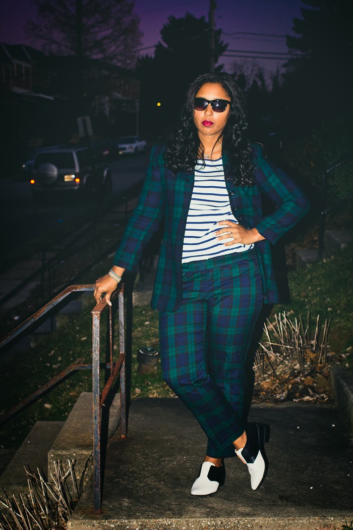 It’s a mans world but we women sure do look good in it. There is nothing I love more than to feminize a masculine look. I could have easily worn this suit with my sky high YSL Tribtoo pumps but decided to keep it with the guys with a pair 2 toned loafers. These shoes from Shoe Dazzle are hands down my favorite statement shoe. No matter what they are paired with, they scream Rat Pack to me and who can disagree that they were by far the most stylish and dapper men in history!