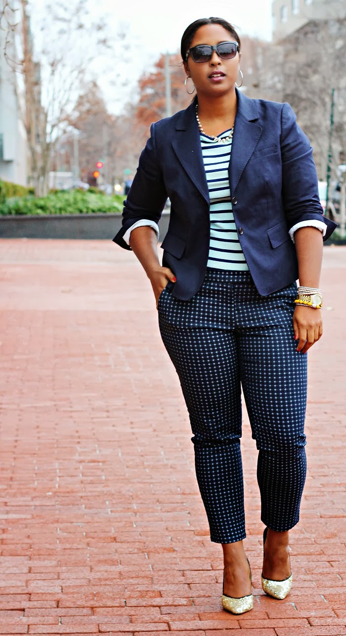 Navy blue is starting to become my new fave neutral. Please do not get it twisted, I still VERY much adore black but navy is just as easy to pair together to look polished and professional. For a casual day outfit I decided to continue on my pattern mixing obsession by wearing a striped boat neck top from Forever 21 with my trusty paisley pants from Marshall’s. It is not my best look but at times I feel as if you must show the ehhh looks as well.