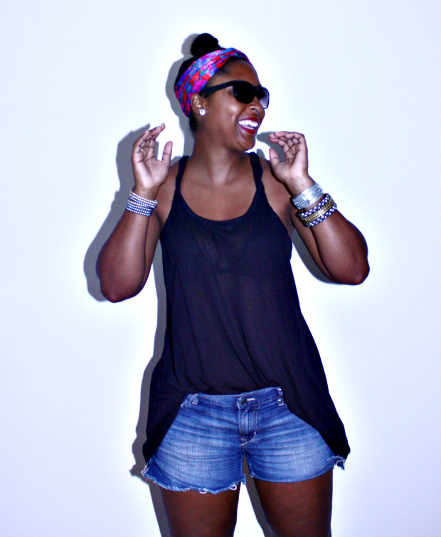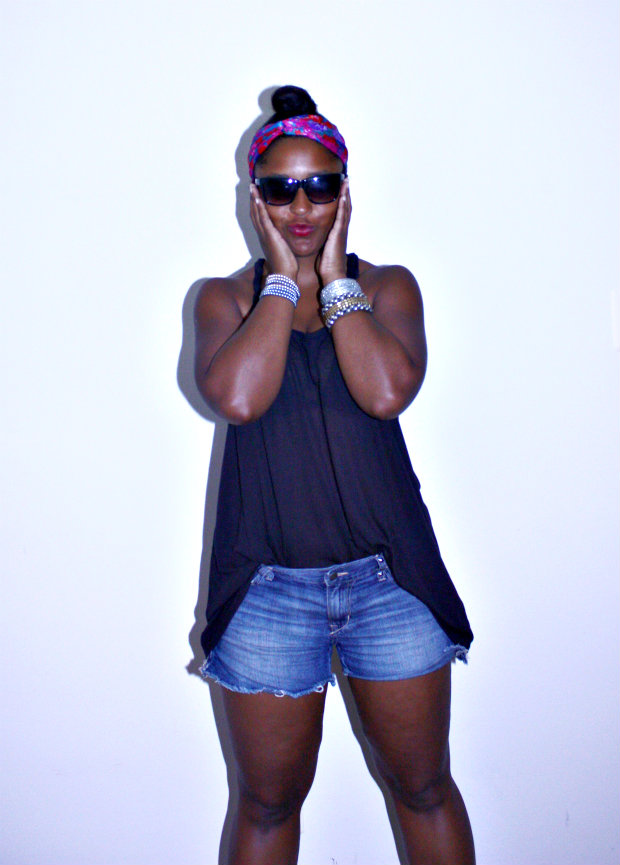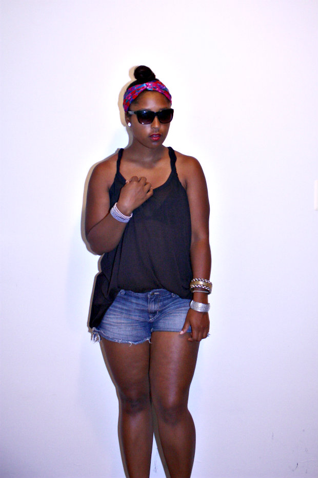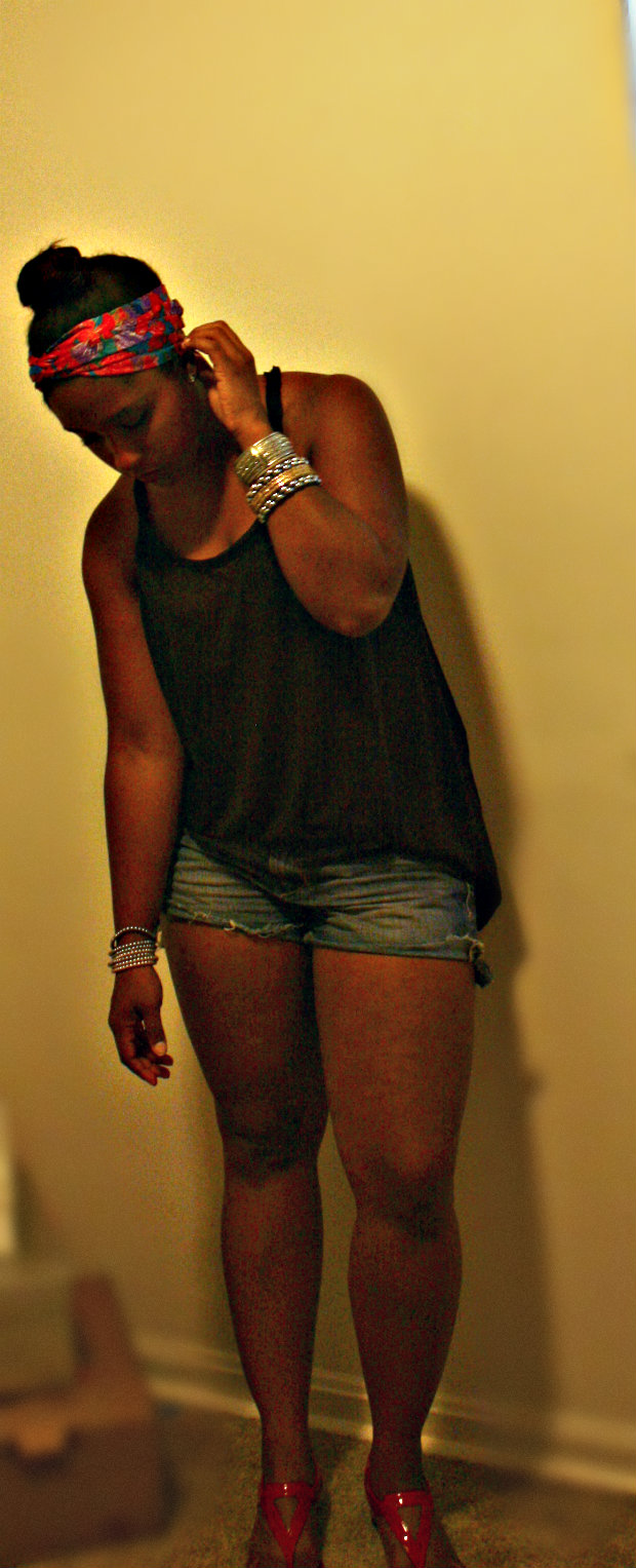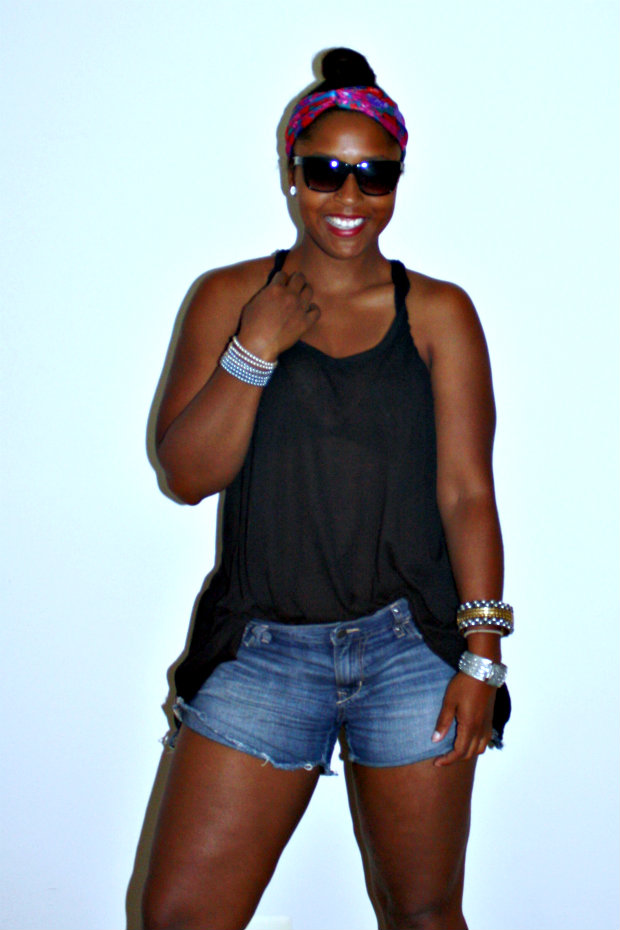 So who else has been like a cat on a hot tin roof? Goodness gracious, this past weekend in DC was beyond hot. I dont even need to go on a diet because I am just sweating off any excess pounds! But I dont want to be the typical person complaining about the heat etc given that it IS summer and well the temps do rise but sheesh…… Yesterday my boyfriend’s team, DMV Gamebreakers, played in their league tourney and of course I was there to support and take pics. I chose to wear as little clothing as possible while still staying within the law and not catching an indecent exposure case. I am absolutely in love with my sheer tanks from H&M and own them in SEVERAL colors. They are the tank equivalent to the Target Mossimo Ts that I am always raving about. I am also extremely picky about my shorts and these Old Navy ones are the perfect match for me. They are a good length, they dont act sausage casings for my thighs and they are a nice faded color! Because I am a sweater (gross I know), I cannot have hair on my back so I have to opt for a very high bun with a pop of color thanks to my mom’s scarf and my ImREDy pout……